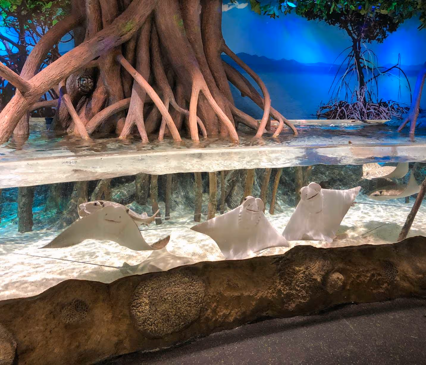 The centerpiece of the Caribbean section is the breathtaking one-million-gallon exhibit where sharks, rays, and tropical fish swim overhead as you walk through an underwater tunnel.